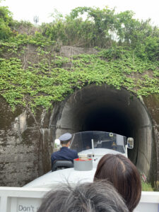 南阿蘇鉄道の旅で印象的だったのが、トンネルです。写真に写るトンネルの入口は、蔦や植物に覆われており、まるでジブリ映画に出てきそうな幻想的な雰囲気を醸し出しています。